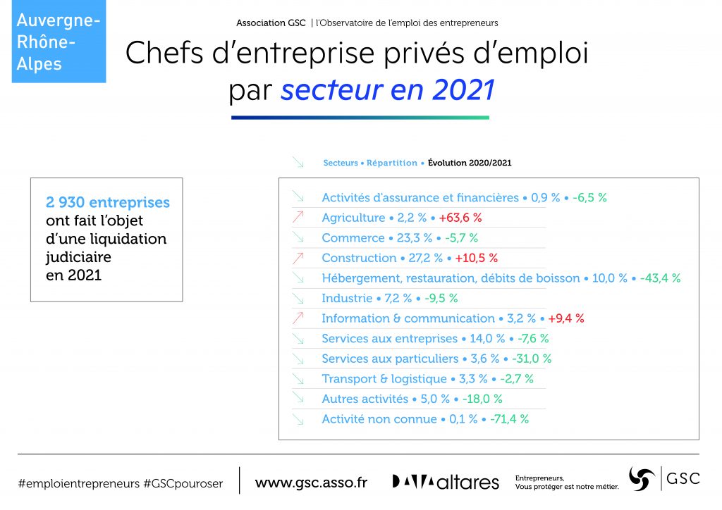 Pour Anthony Streicher, Président de l’association GSC : « Le soutien de l’Etat continue de produire ses effets pour aider les entreprises à maintenir la tête hors de l’eau. Nous n’avons pas été confrontés au raz-de-marée des faillites redouté. Néanmoins, les chefs d’entreprise devront faire face à de nouvelles menaces, conséquences de la guerre en Ukraine et il convient d’être particulièrement prudent pour l’avenir. En 2021, ce sont près de 30 000 femmes et hommes chefs d’entreprise qui ont perdu leur emploi au niveau national et 3 285 en Auvergne-Rhône-Alpes. Pour l’immense majorité d’entre eux, sans filet de sécurité. Et c’est un véritable drame, lorsque ces derniers viennent trop tardivement demander de l’aide et nous disent « si j’avais su » ! ».
