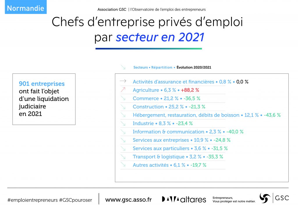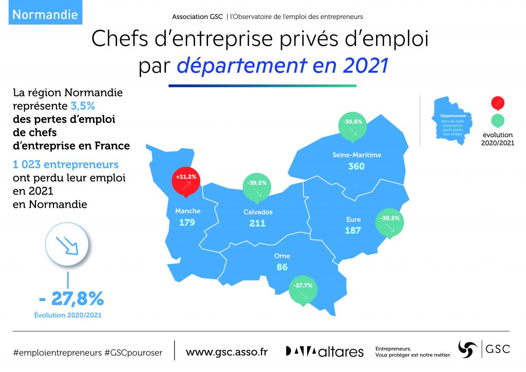 L’association GSC et la société Altares dévoilent la 6ème édition de l’Observatoire de l’emploi des entrepreneurs. Les chiffres 2021 de l’Observatoire en région Normandie révèlent qu’en 2021, 1 023 femmes et hommes chefs d’entreprise ont perdu leur activité professionnelle, une diminution de 27,8 % par rapport à l’année 2020.