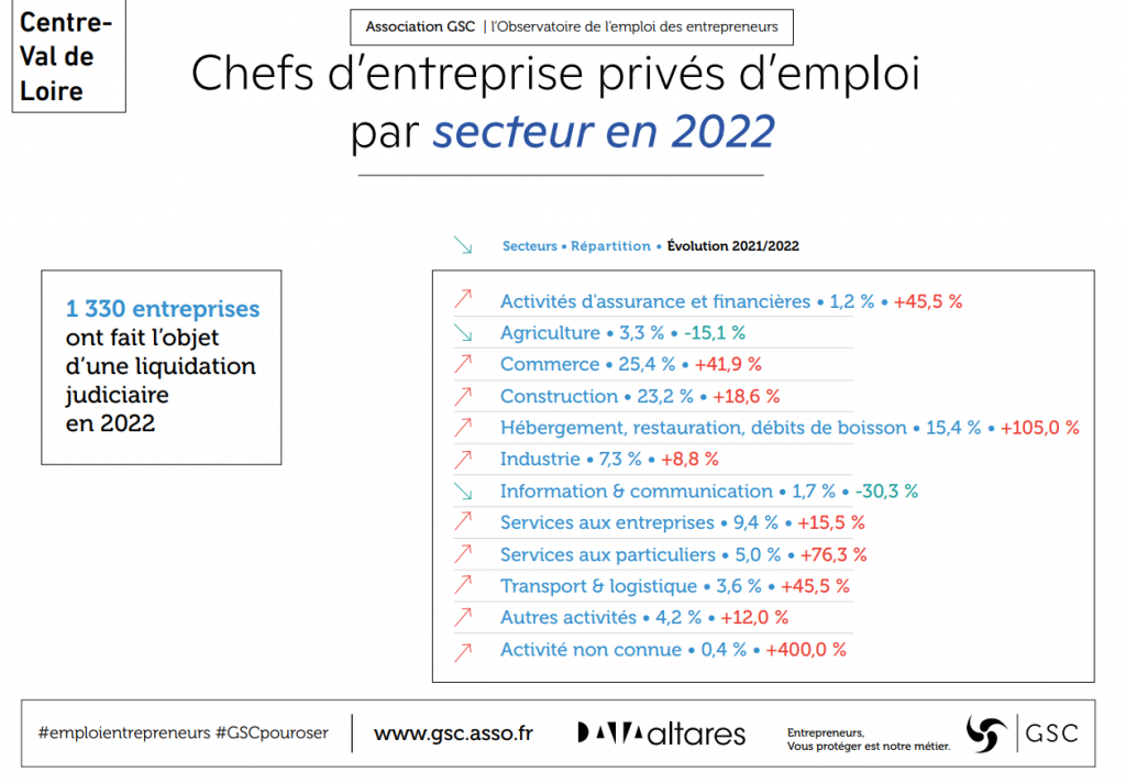 Anthony Streicher, Président de l’association GSC : « Chaque jour, près de 4 chefs d’entreprise perdent leur emploi en Centre-Val de Loire. Les chiffres de 2022 nous alertent sur une réalité que nous connaissions déjà. Les entrepreneurs doivent faire face à un contexte économique particulièrement difficile dans lequel les fragilités se multiplient et s’alimentent. Les pénuries de main-d’œuvre et la majoration des coûts énergétiques compliquent les défis auxquels ils devaient faire face. Alors que les tensions sur la trésorerie se font déjà sentir, la reprise des procédures d’assignation de l’Urssaf en 2023 pourrait encore accélérer la remontée des défaillances déjà observée en 2022. »