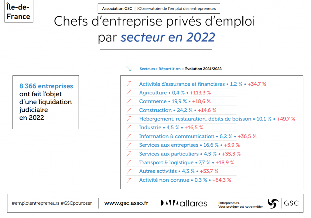Malgré des carnets de commandes remplis, les entrepreneurs de la construction sont les plus impactés, pénalisés par les difficultés d’approvisionnement, les coûts des matières premières et la pénurie de main d’œuvre. En 2022, 2 011 entrepreneurs de la construction ont perdu leur emploi en Île-de-France.
