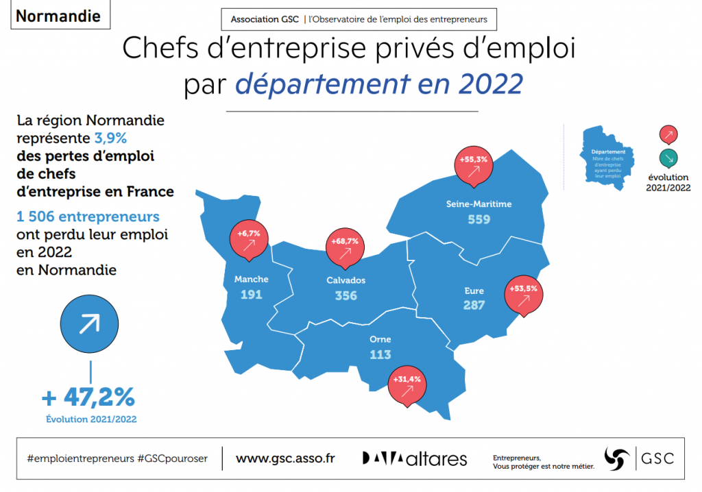 Le département du Calvados est particulièrement touché avec une hausse de 68,7 % pour 356 chefs d’entreprise impactés.