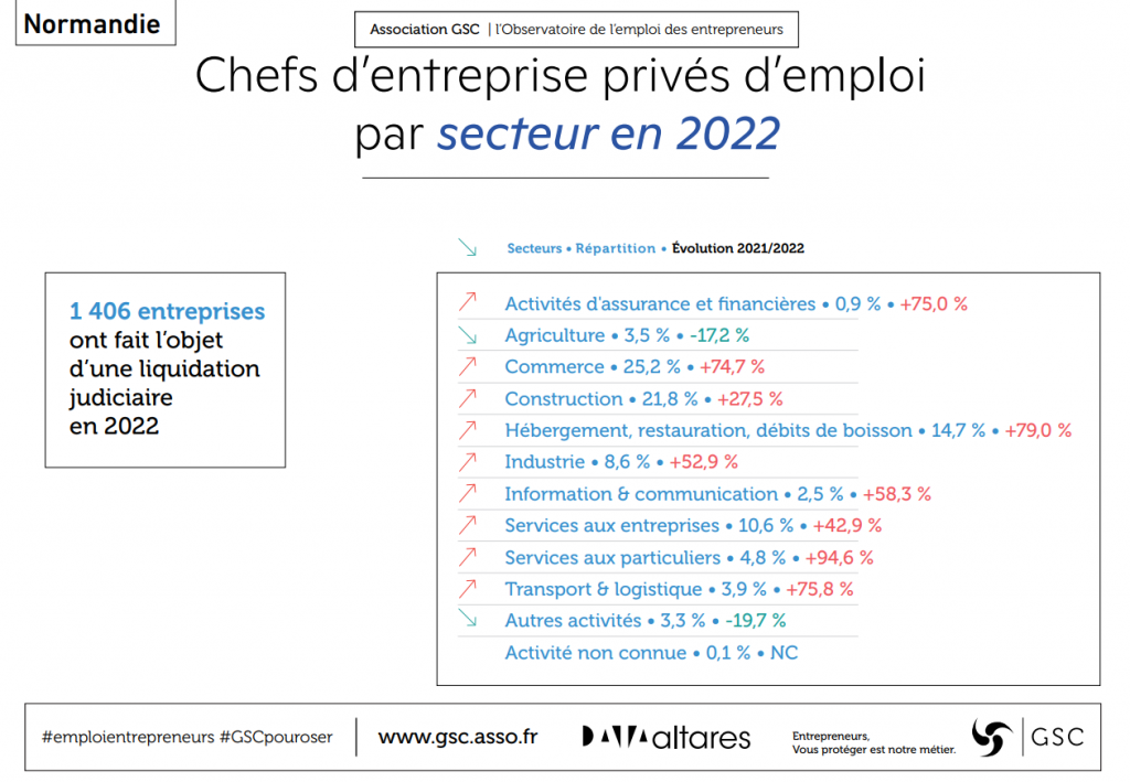 Anthony Streicher, Président de l’association GSC : « Chaque jour, plus de 4 chefs d’entreprise perdent leur emploi en Normandie. Les chiffres de 2022 nous alertent sur une réalité que nous connaissions déjà. Les entrepreneurs doivent faire face à un contexte économique particulièrement difficile dans lequel les fragilités se multiplient et s’alimentent. Les pénuries de main-d’œuvre et la majoration des coûts énergétiques compliquent les défis auxquels ils devaient faire face. Alors que les tensions sur la trésorerie se font déjà sentir, la reprise des procédures d’assignation de l’Urssaf en 2023 pourrait encore accélérer la remontée des défaillances déjà observée en 2022. »