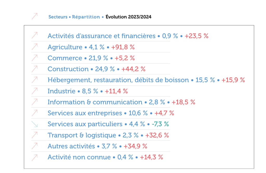 Dans le secteur de l’hébergement, restauration et débits de boissons, 357 femmes et hommes se sont retrouvés au « chômage » en 2024 (+ 15,9 %). Les activités de restauration concentrent plus des deux-tiers des chefs d’entreprise impactés du secteur.