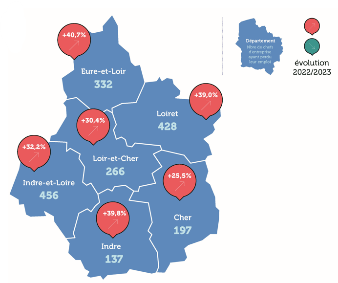 Le Cher a le plus faible taux d’augmentation : 197 dirigeants se sont retrouvés en situation de « chômage », soit 25,5 % de plus qu’en 2022.