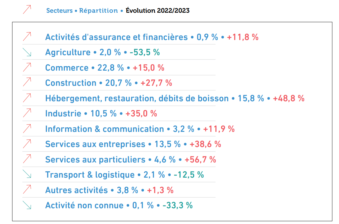 Dans le secteur de l’hébergement, restauration et débit de boissons, 320 femmes et hommes se sont retrouvés au « chômage » en 2023 (+ 48,8 %). Les activités de restauration représentent plus de 7 chefs d’entreprise sur 10 impactés du secteur.