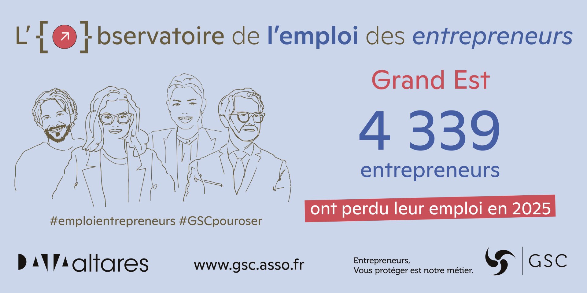 4 339 chefs d’entreprise ont perdu leur emploi en 2025 dans le Grand Est, selon l’Observatoire de l’emploi des entrepreneurs réalisé par l’association GSC et la société Altares. Chaque jour, près de 12 femmes et hommes se sont retrouvés sans emploi. Si la hausse se poursuit par rapport à 2024 (+ 3,1 %), le rythme de progression reste toutefois nettement plus modéré que lors des années précédentes. Ce niveau élevé confirme la persistance de fortes tensions économiques. Pour la deuxième année consécutive, plus de 4 000 pertes d’emploi d’entrepreneurs dans le Grand Est. Les secteurs de la construction et du commerce, en grande difficulté depuis plusieurs années, sont toujours exposés mais la situation d’améliore.