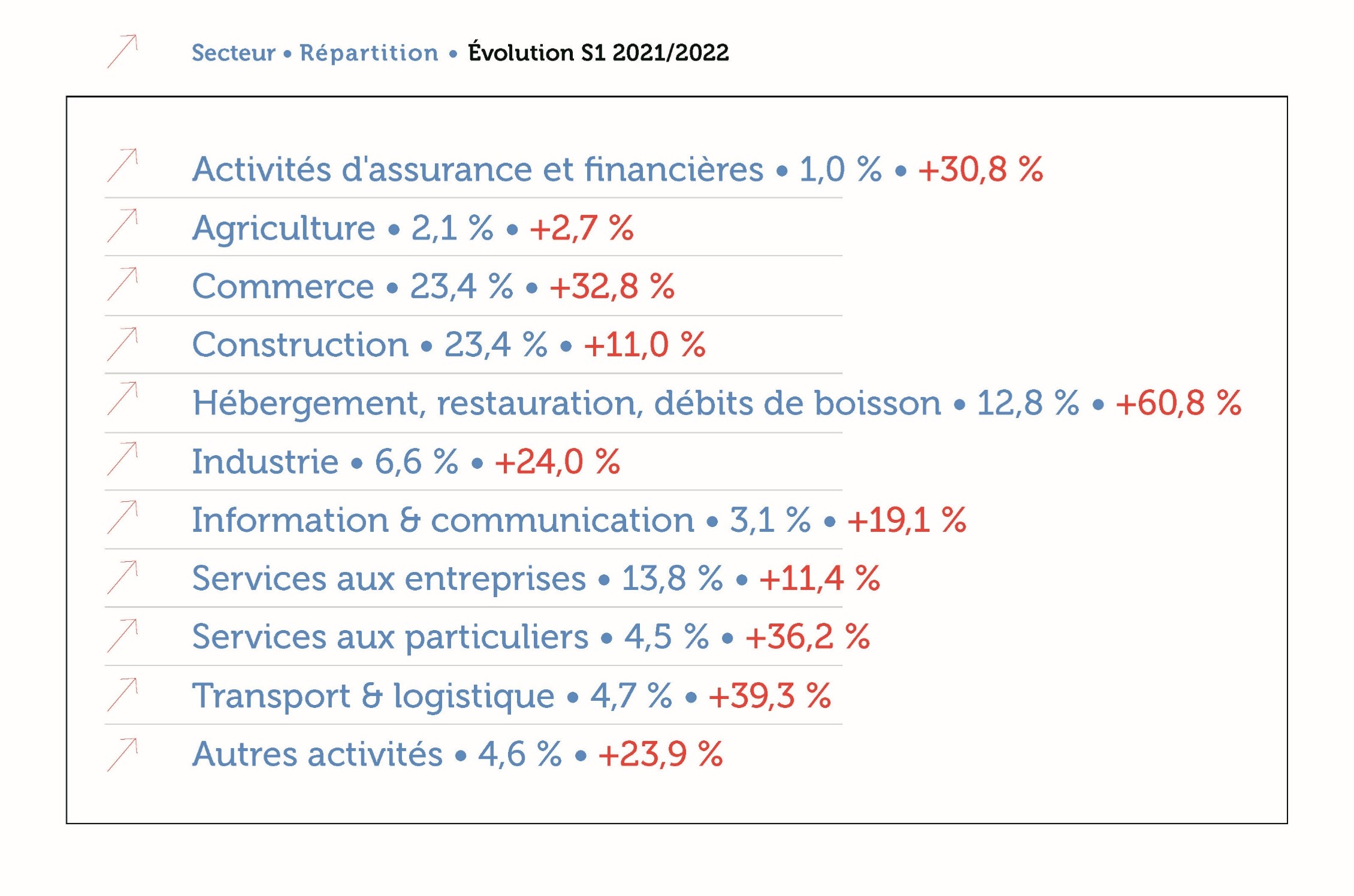 Les gérants de SARL – 7 755 dirigeants touchés – forment l’essentiel des pertes d’emploi (en augmentation de 19,8 % par rapport au 1er semestre 2021). Toutefois, la part des gérants de SARL touchés diminue, alors que le nombre de dirigeants de SAS (+ 36,2 %) et d’artisans – commerçants (+ 21,8%) touchés augmente, quant à lui, fortement.