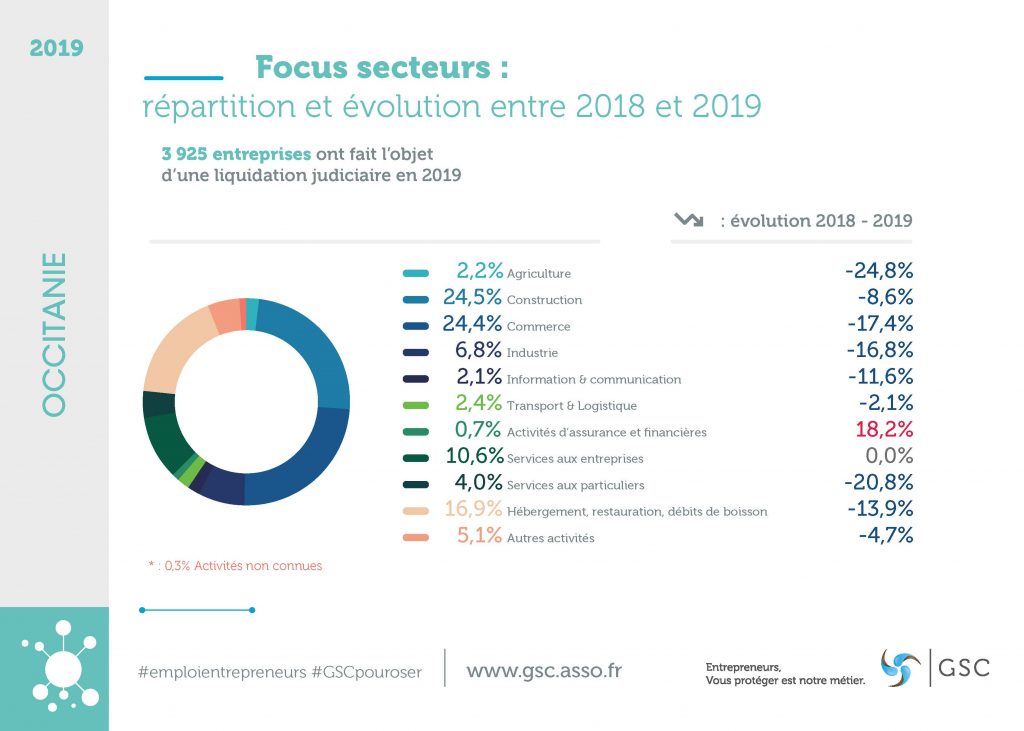 Alors que l’âge médian des dirigeants impactés en Occitanie s’établit à 46,9 ans en 2019, les effets dévastateurs du COVID-19 laissent penser que toutes les tranches d’âges seront impactées cette année. Les secteurs les plus touchés en 2019 dans la région comme la construction, le commerce et l’hébergement, restauration et débits de boissons devront également faire face à de nouvelles difficultés en 2020. Depuis le 15 mars, de nombreux dirigeants ont dû fermer leur établissement ou mettre leur activité à l’arrêt laissant présager des situations financières dramatiques qui pourront engendrer des liquidations judiciaires. Ces secteurs représentaient déjà plus de la moitié des pertes d’emploi en Occitane en 2019 avec 963 entreprises impactées dans la construction, 947 sociétés liquidées dans le commerce et 665 dans le secteur de l’hébergement, restauration et débits de boissons.
