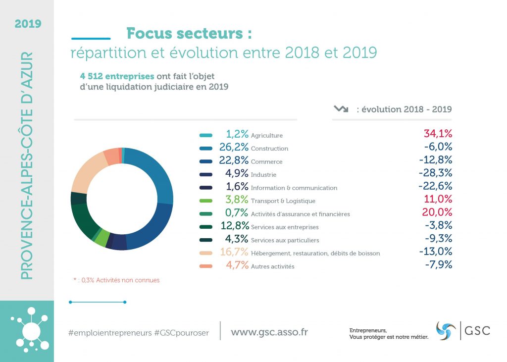 Alors que l’âge médian des dirigeants impactés en Provence-Alpes-Côte-d’Azur s’établit à 47,3 ans en 2019, les effets dévastateurs du COVID-19 laissent penser que toutes les tranches d’âges seront impactées cette année. Les secteurs les plus touchés en 2019 dans la région comme la construction, le commerce et l’hébergement, restauration et débits de boissons devront également faire face à de nouvelles difficultés en 2020. Depuis le 15 mars, de nombreux dirigeants ont dû fermer leur établissement ou mettre leur activité à l’arrêt laissant présager des situations financières dramatiques qui pourront engendrer des liquidations judiciaires. Ces secteurs représentaient déjà plus de la moitié des pertes d’emploi en Provence-Alpes-Côte-d’Azur en 2019 avec 1 182 entreprises impactées dans la construction, 1 027 sociétés liquidées dans le commerce et 755 dans le secteur de l’hébergement, restauration et débits de boissons.