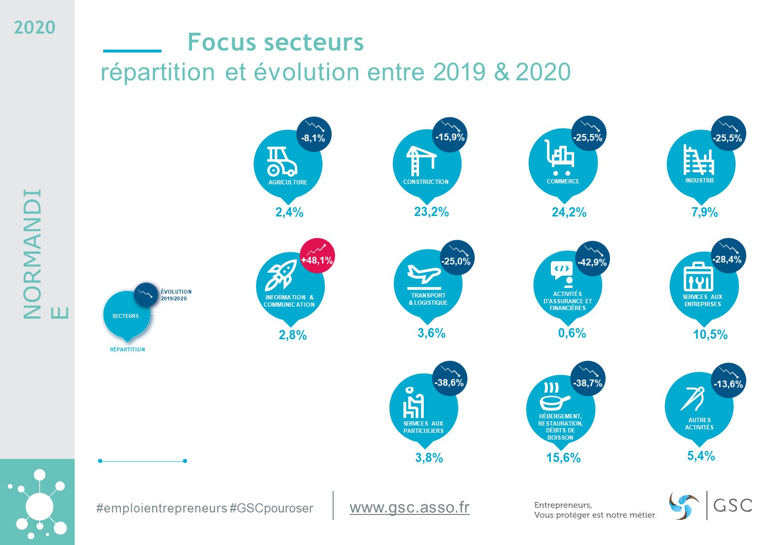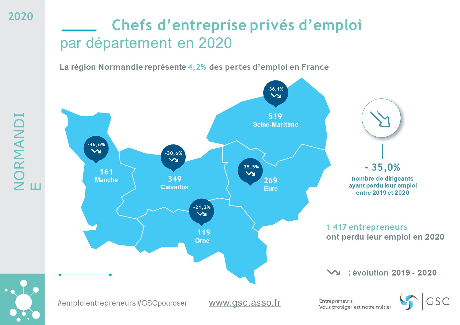 Chiffres 2020 de l’Observatoire en Normandie : l’association GSC et la société Altares dévoilent la 5ème édition de l’Observatoire de l’emploi des entrepreneurs. En 2020, 1 417 femmes et hommes chefs d’entreprise ont perdu leur activité professionnelle en région Normandie. Les mesures prises par le gouvernement dans le cadre de la crise de la COVID-19 ont protégé temporairement les dirigeants de la faillite. Malgré une diminution de 35 %, ce territoire reste fortement impacté par le chômage des entrepreneurs.